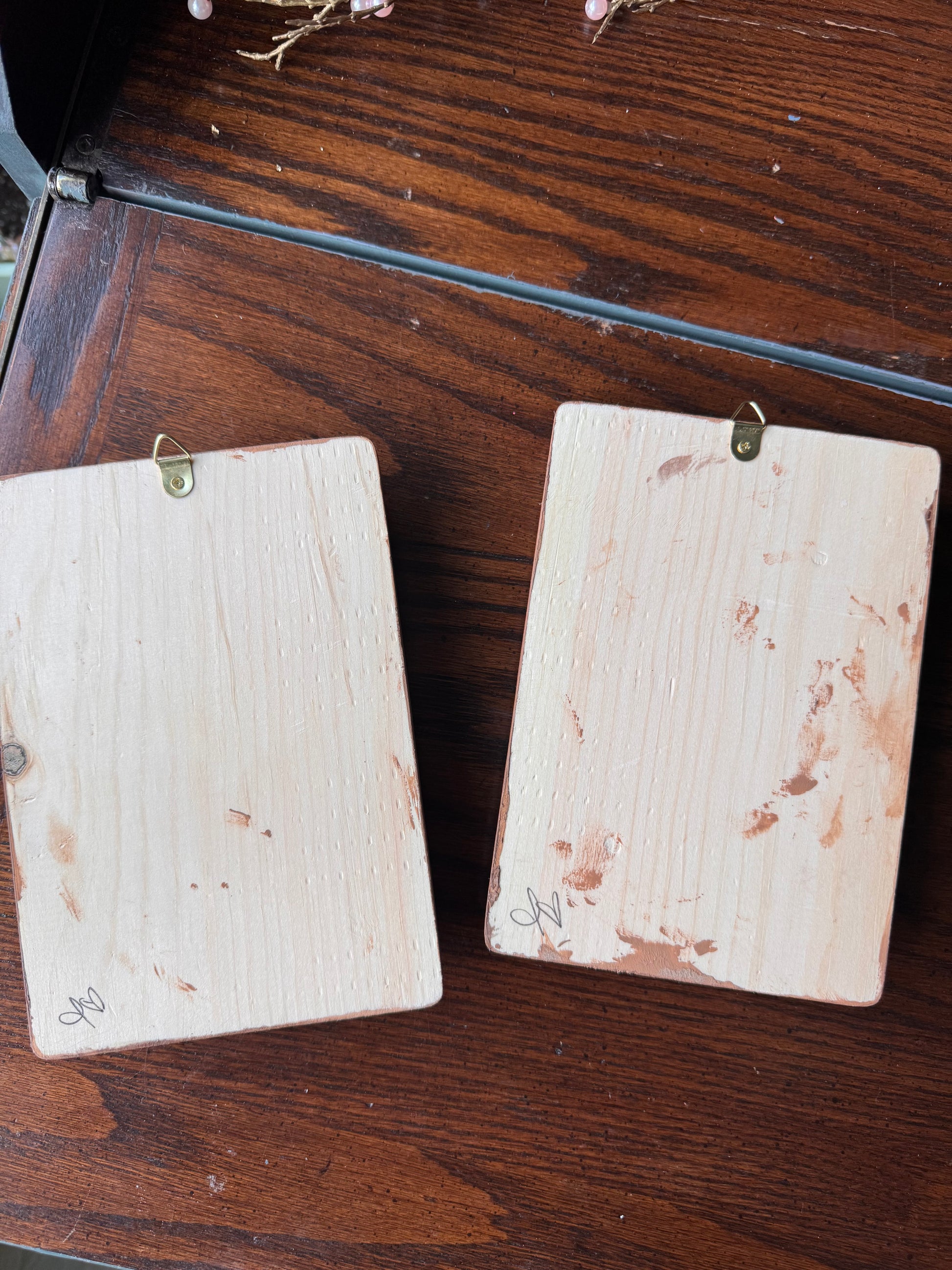 My mini plaques are artisan crafted and are in handmade condition, with normal variations from handcrafting. Plaque base is wood that has not been fully sanded down to add character to the piece. The backs may have overpaint. The relief is created with clay that has lines and cracks which is a normal variation. Plaque photographed is the exact item that you will receive. 😊 I always include a photo with a pen for scale as well as photo's in different lightings.