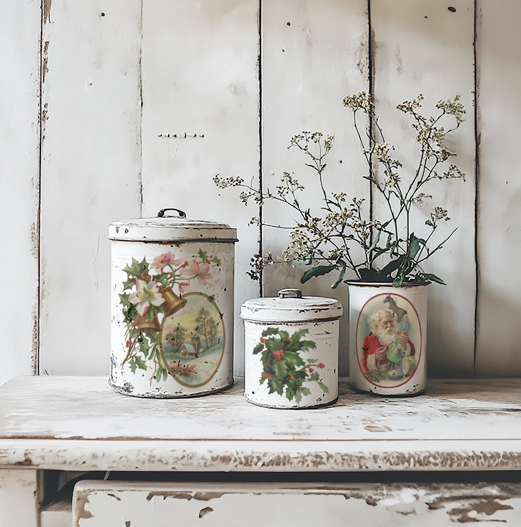 Upcycle a cookie jar with a festive saying, brass bells, and a joyful scene, or thrift-flip a winter planter with symmetrical holly tucked into each corner. Sandwich mini portraits between Bibelots 2 for charming heirloom ornaments. Pair Christmas Joy with the Snow Globes Mould to craft storybook ornaments that become cherished heirlooms.