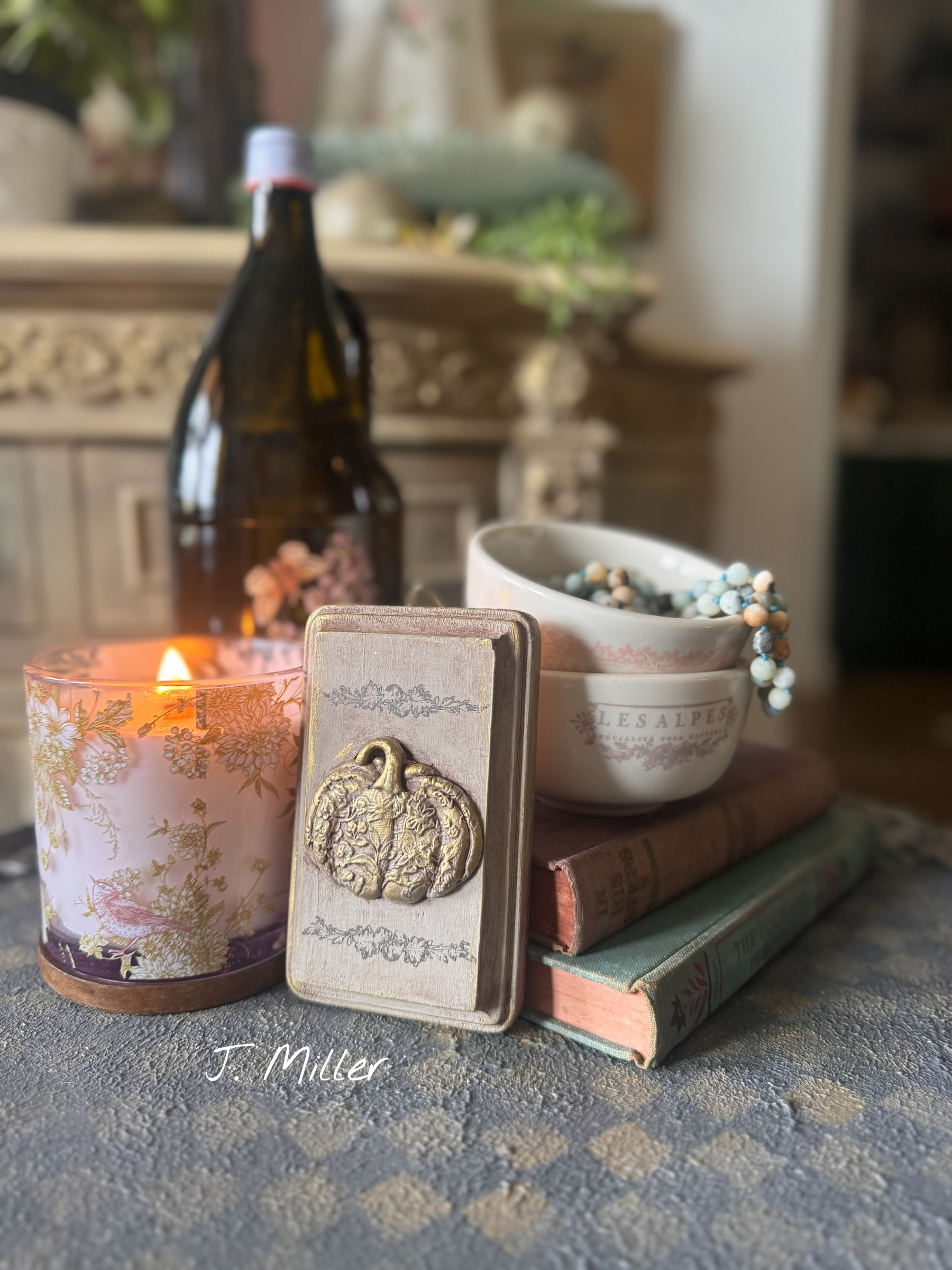 Fall Pumpkin Mini Plaque, Collage Wall, Relief Plaque, Wall Decor, Handcrafted, Gold Accent