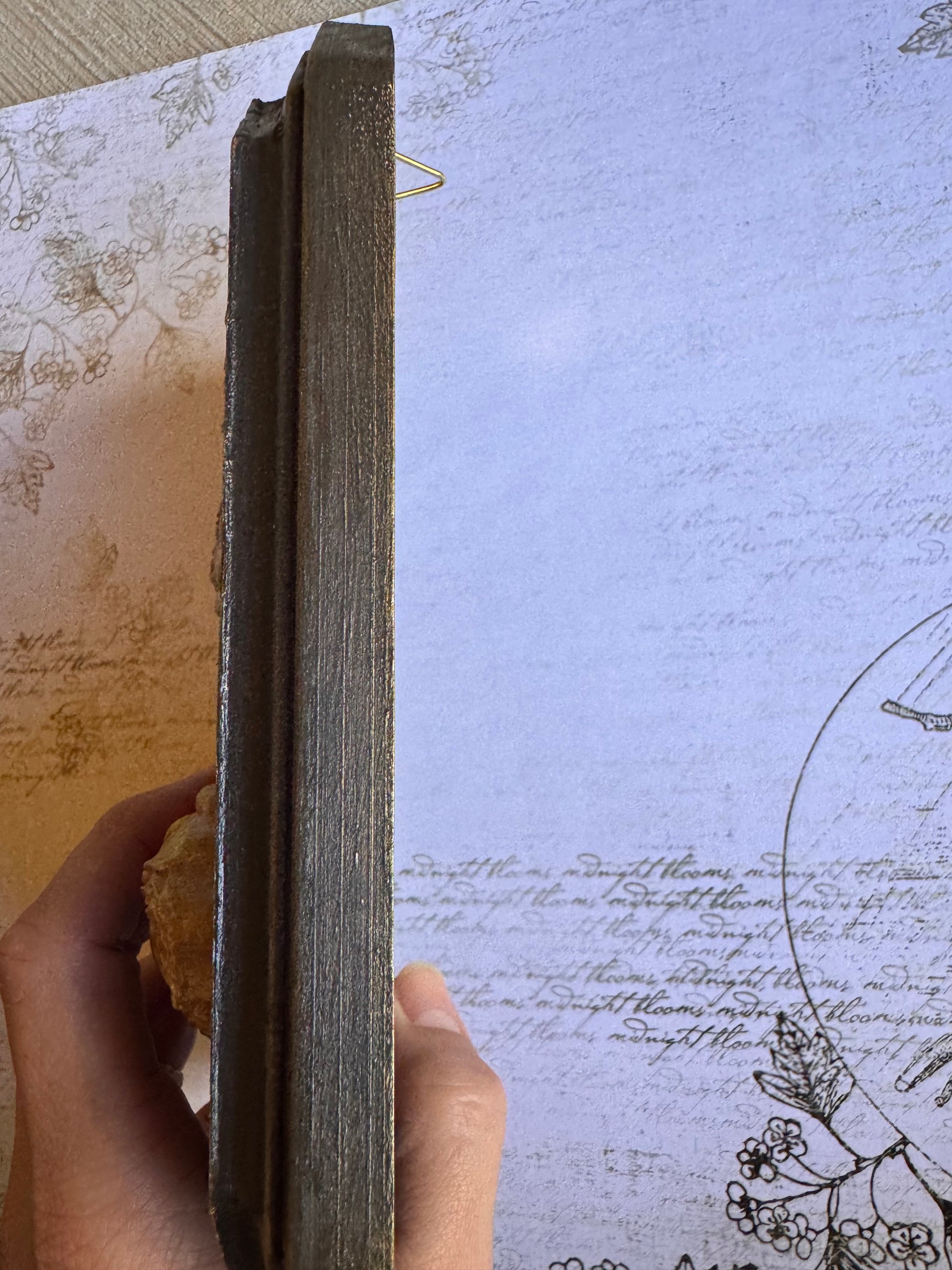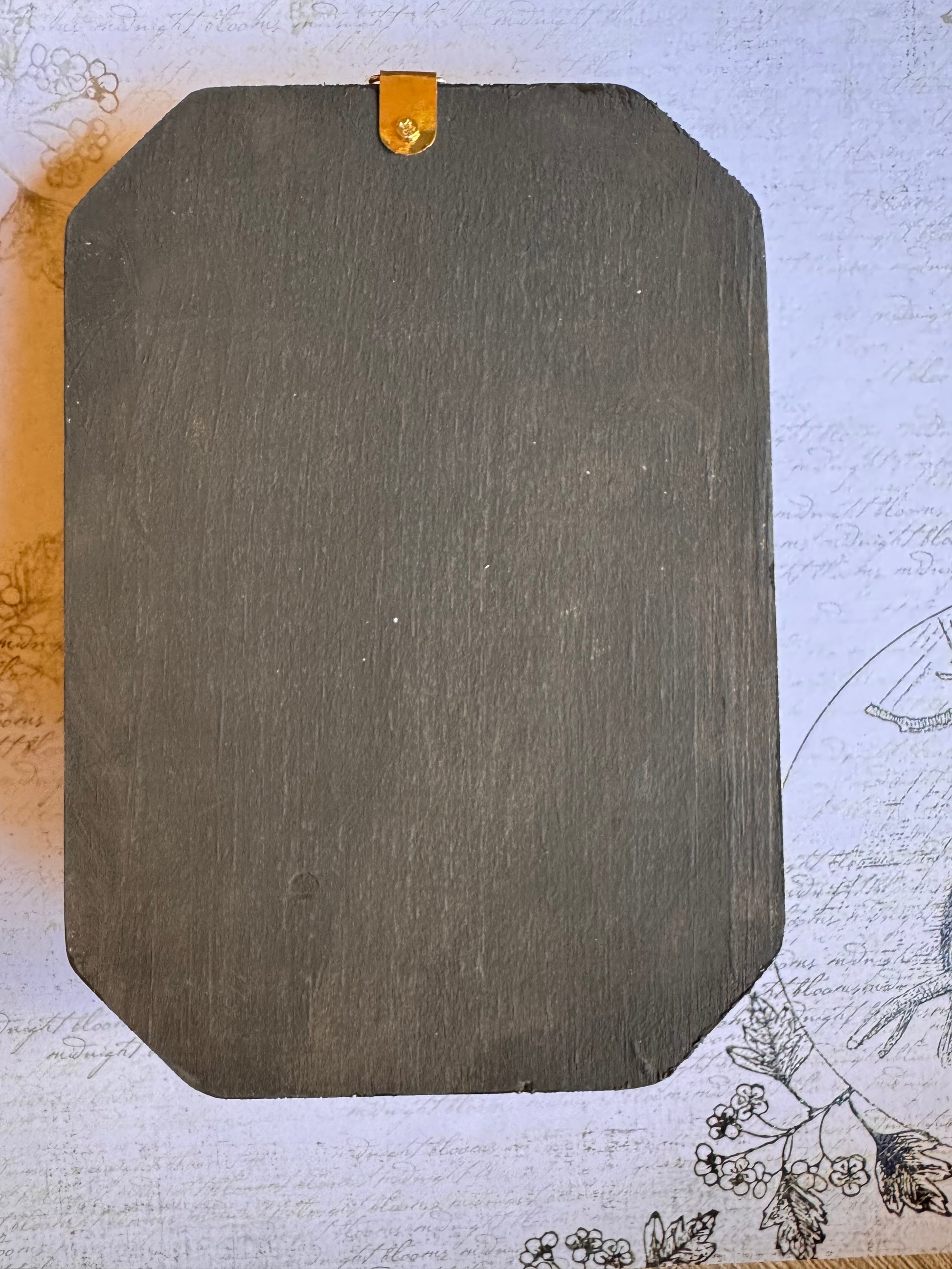 My plaques are artisan crafted and are in handmade condition, with normal variations from handcrafting. Plaque base is wood that has not been fully sanded down to add character to the piece. The backs have a thin coat of paint and also have some "overpaint" from creating these unique plaques.