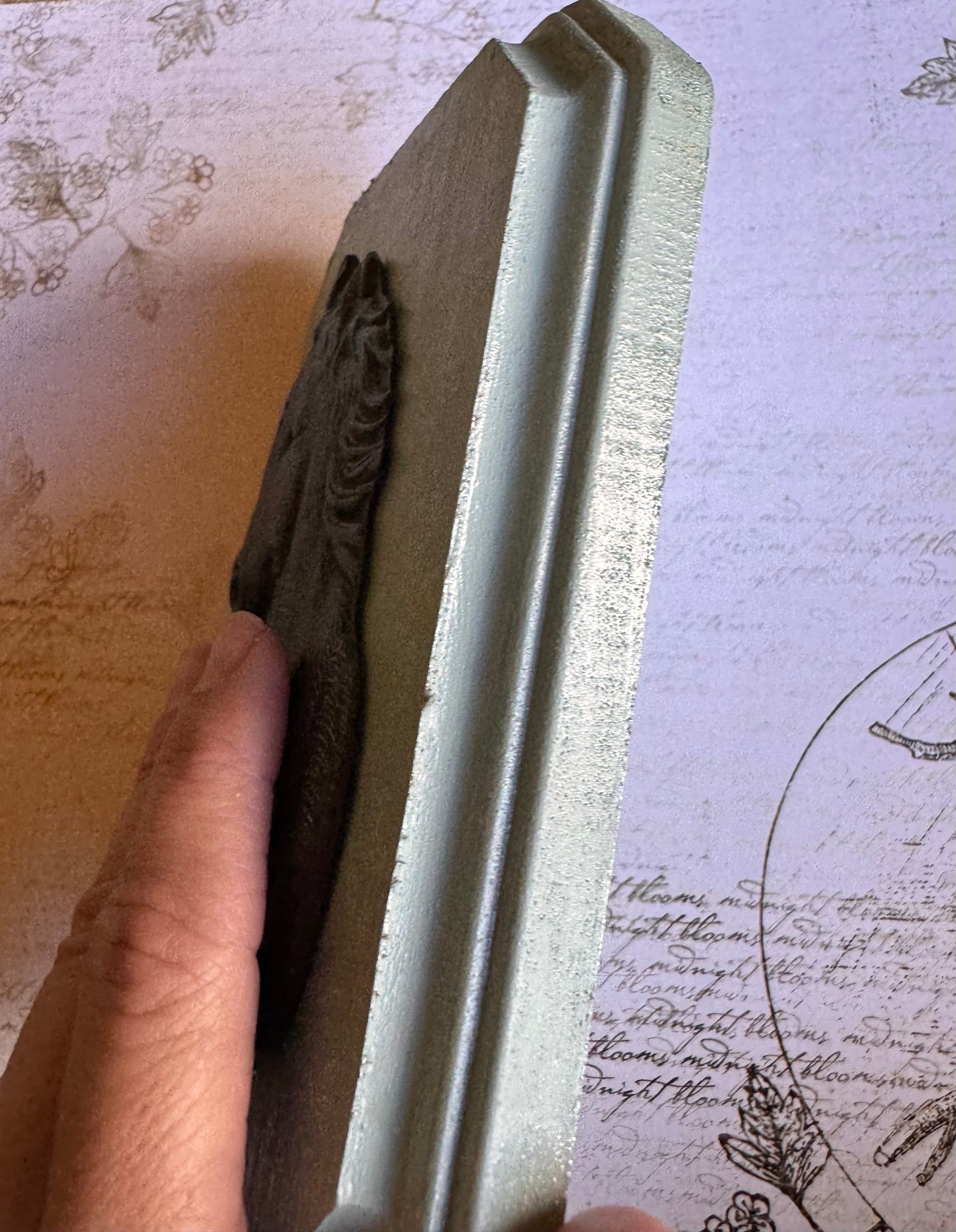 Unique french country plaque, handcrafted, perfect for maximalism and collage wall decor. This has a french blue base with dark brown and white details. Subtle metallic accents also. Beautiful stamped details give the piece a french country look.