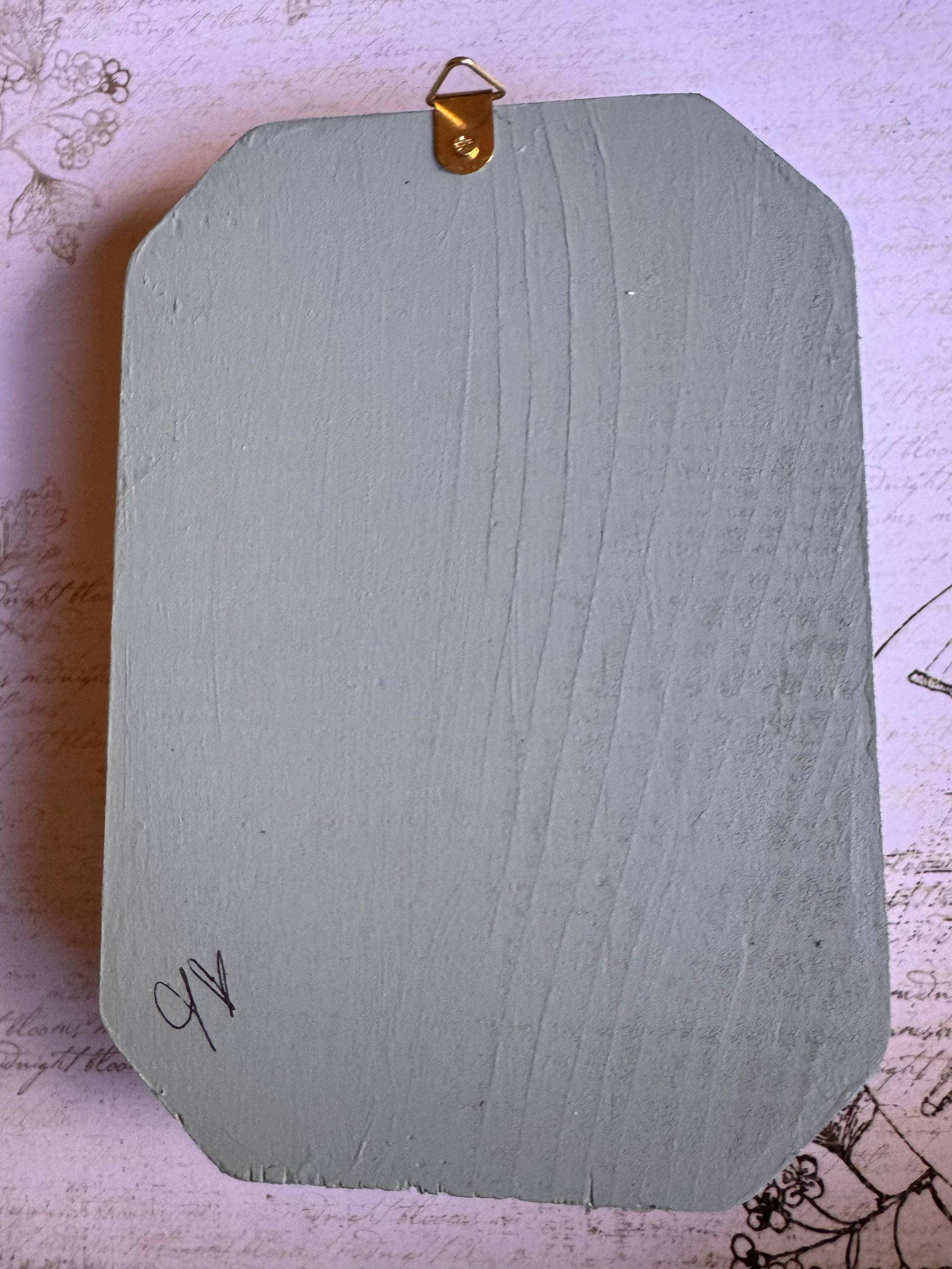 My plaques are artisan crafted and are in handmade condition, with normal variations from handcrafting. Plaque base is wood that has not been fully sanded down to add character to the piece. The backs have a thin coat of paint and also have some "overpaint" from creating these unique plaques.