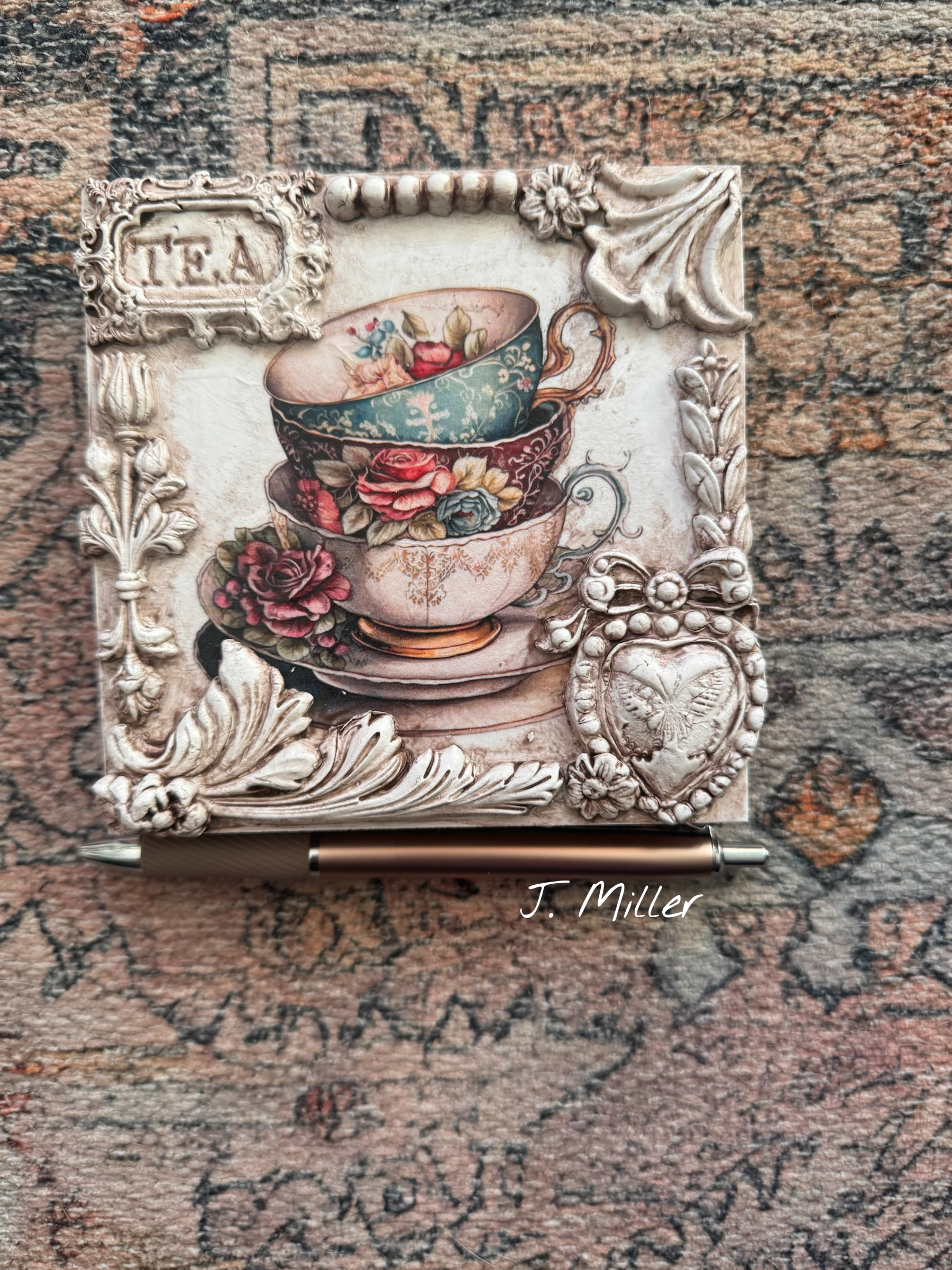 Unique mini mixed media tea room decor. Created with decoupage and clay. Choose your panel.